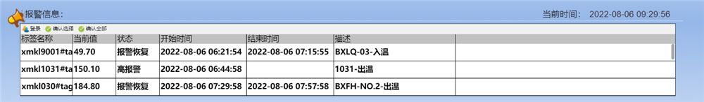 系統實時獲取設備運行數據,匹配報警策略。當設備參數超過用于預設的閥值時,自動報警。
